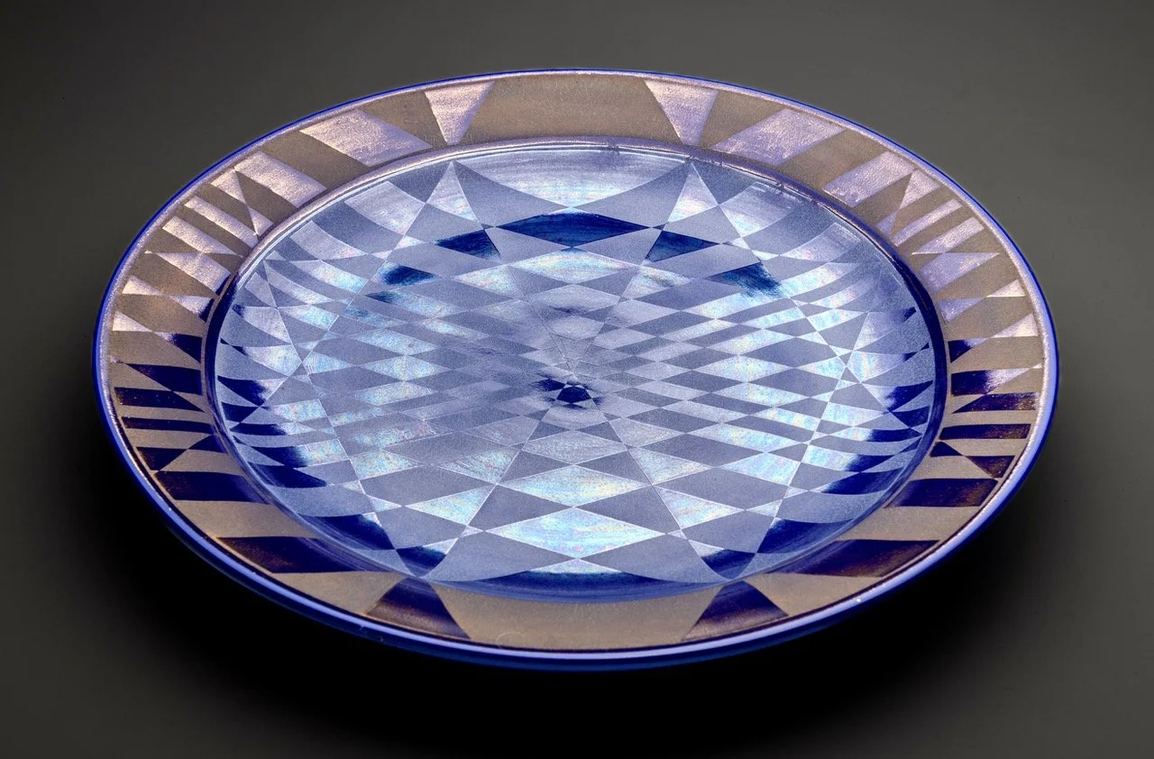 “Encompassing two juxtaposed positions, both exploring illusion through play of light - my sandblasted patterned lustre work is inspired by all things within the manmade and natural world, whilst my Rock Series draws inspiration from the patterns, textures and colours of the Australian landscape.”